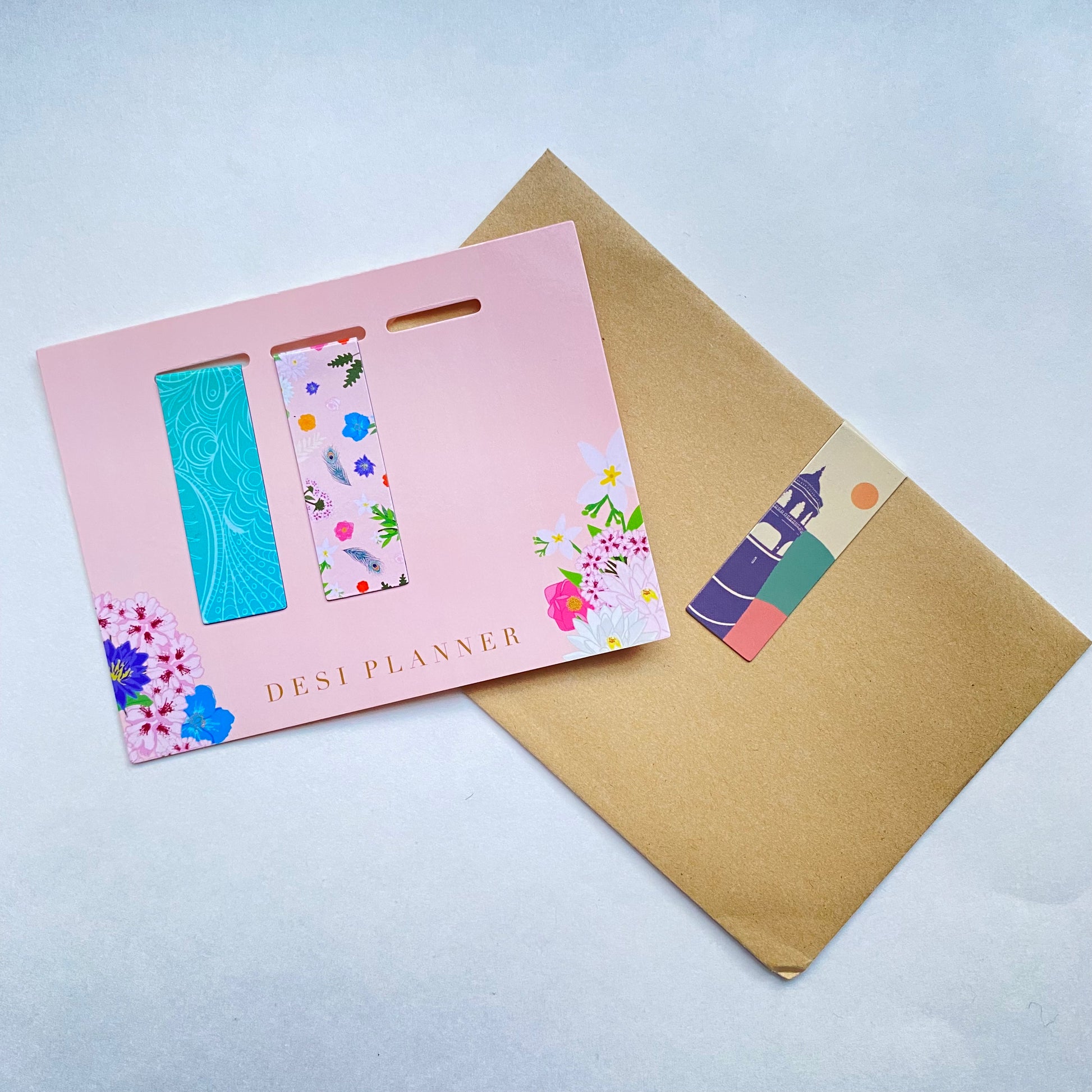 The Planner Mode bookmarks feature three of our favorite past Desi Planner designs!