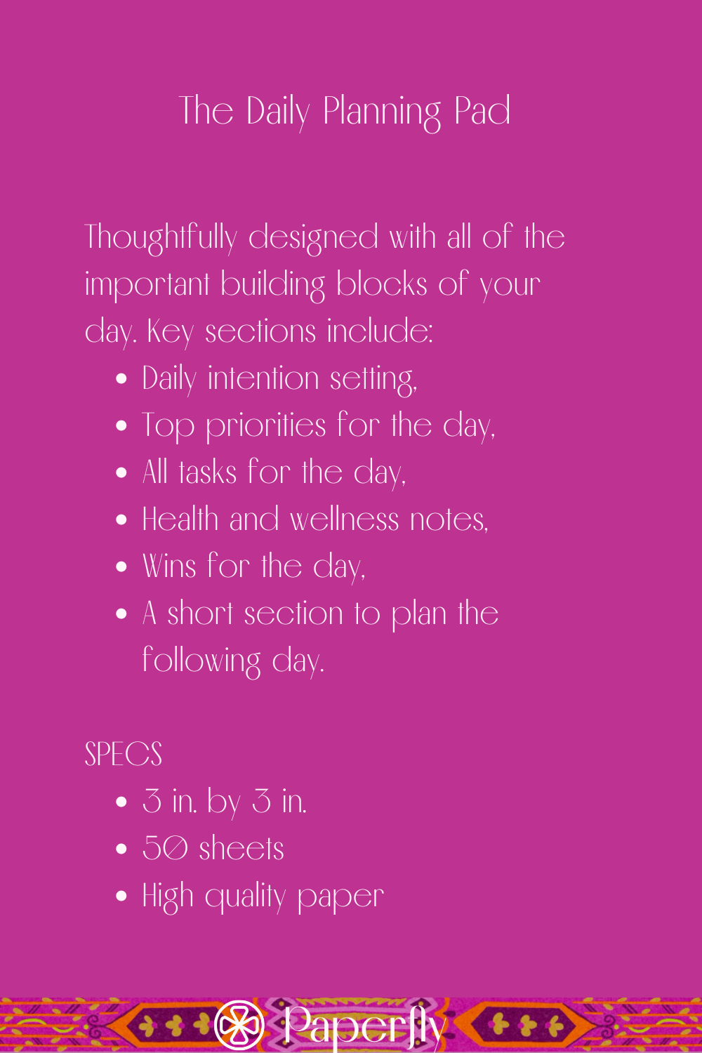 The 2025 Desi Planner. Use the Desi Planner to prioritize key tasks for the day and use this daily planning pad to keep track of all key building blocks of your day!