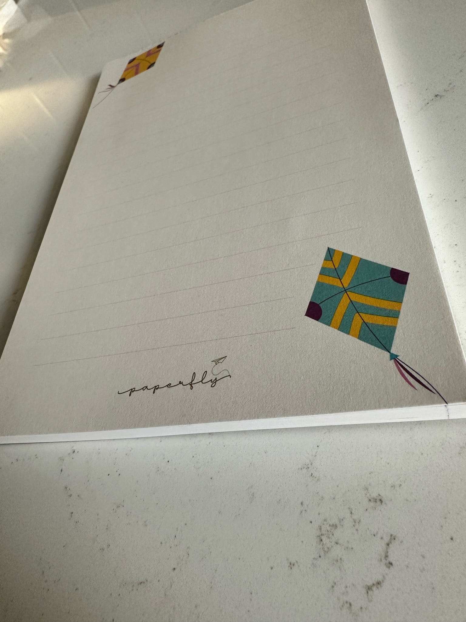 This beautiful and high quality notepad that includes elements from the Kites design.